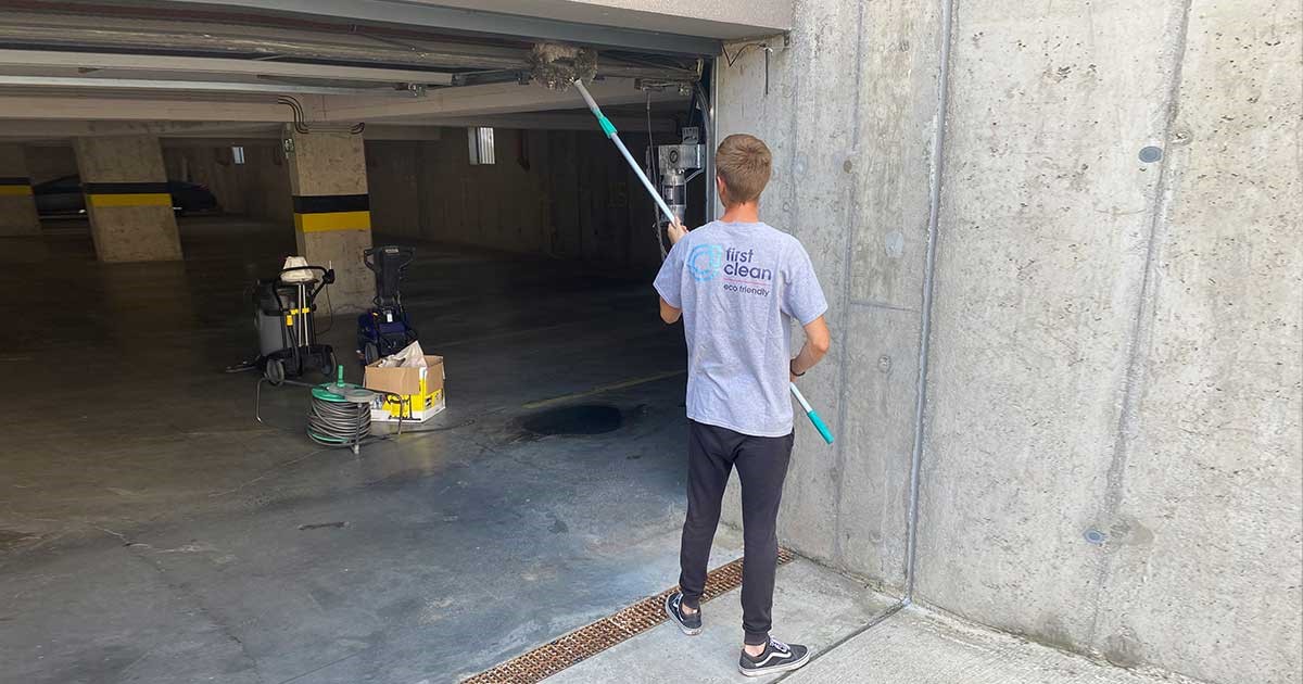 Cleaning underground garages is a challenging and complex task, which the FirstClean team can handle with the right tools and machinery.
