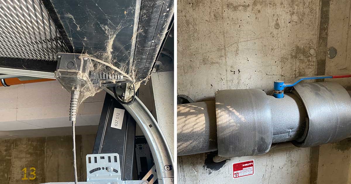 The underground garage is located at the garden level, so it is no surprise that cobwebs infest the corners, ceiling ducts and vents. As a first step, we used our telescopic dusting tools to clear away all the cobwebs.
